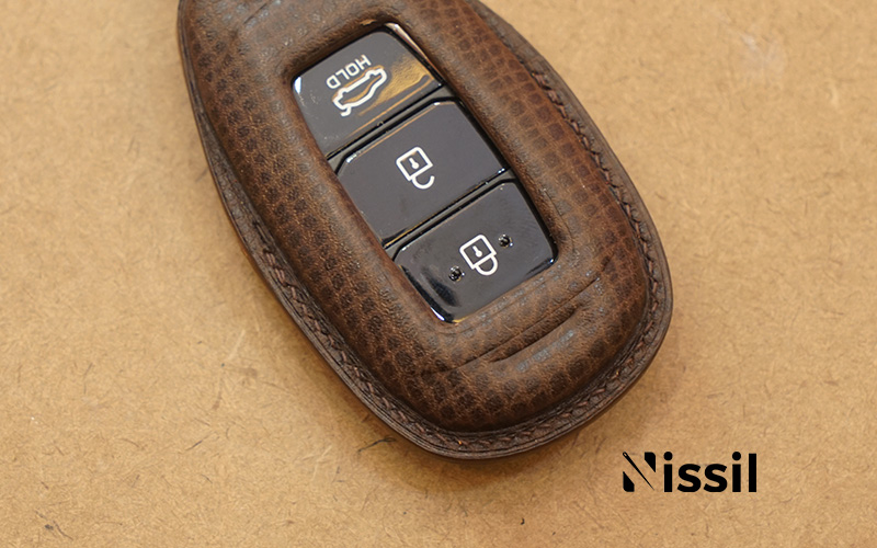 Da Bur England là từ các nhà máy của Burberry Anh Quốc, được sản xuất riêng cho dòng sản phẩm thời trang đình đám của hãng, Nissil đem về như một món quà của Châu Âu cho anh em Việt Nam. Chất liệu da Bur England vô cùng bền bỉ, đặc tính mềm mại dẻo dai với đổ cảm cực kỳ cao, lớp vân nhẹ nhàng trên từng góc cạnh và rất phù hợp với những sản phẩm nhỏ nhỏ như bao da chìa khóa ô tô.