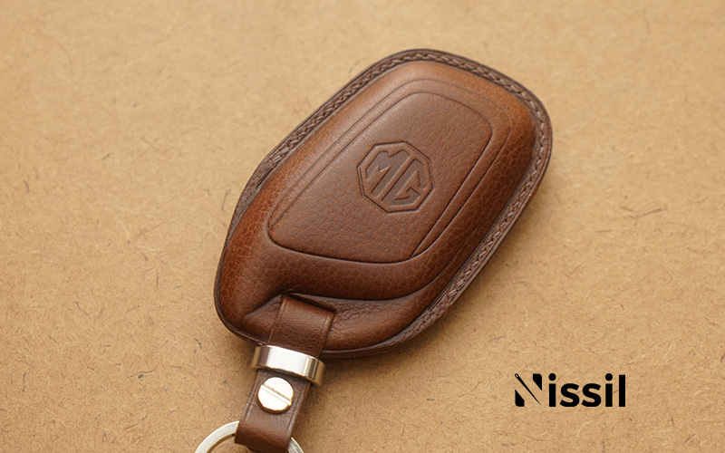 Logo bao da MG in chìm mặt sau bao da