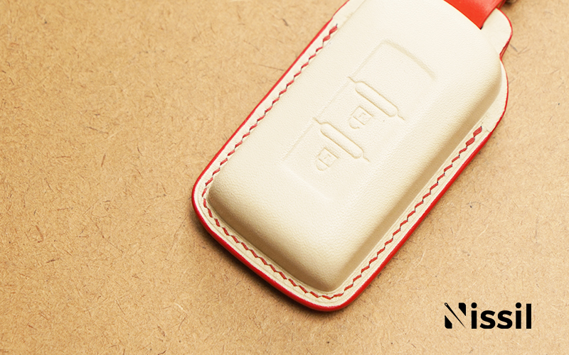Logo Mitsubishi in chìm mặt sau bao da